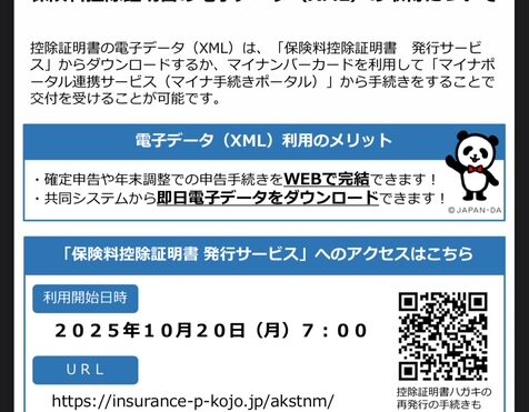 2025年10月22日笠井史代保険料控除証明書発行サービスのお知らせ損害保険(地震保険料控除)や生命保険の控除証明書が届く頃です。 もし、控除証明書を紛失してしまった場合は、再発行に便利な「保険料控除証明書発行サービス※」をご利用下さい。お急ぎの方は、即日電子データのダウンロードが可能で […]